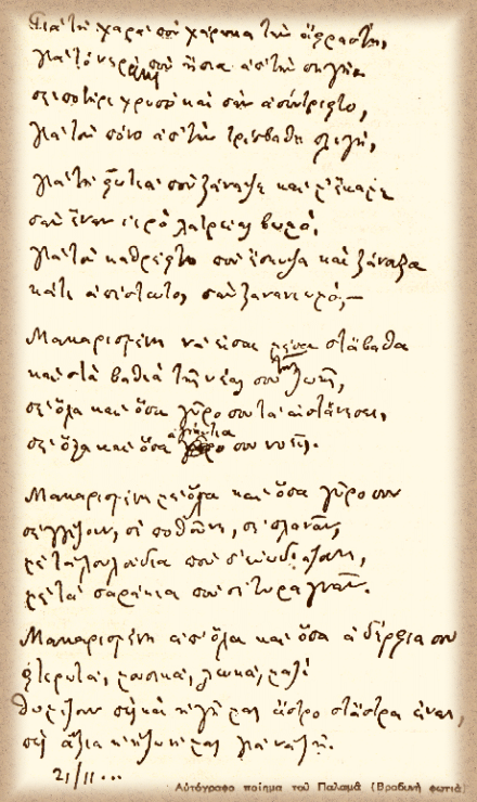 Πιο κάτω παρατίθεται αυτόγραφη επιστολή του ποιητή προς την Ελένη Κορτζά…